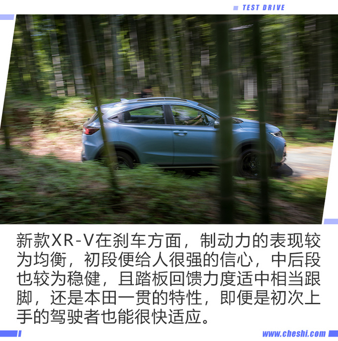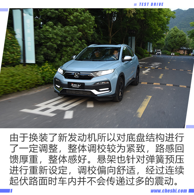 新款XR-V由于换装了新发动机所以对底盘结构进行了一定调整,底盘系统的整体调校较为紧致,路感回馈比较厚重,整体感较好。而悬架方面也针对弹簧预压进行了重新设定,调校偏向舒适,避震在下压和回弹时对路面上的细碎颠簸以及大的坑洼路面处理比较到位,后轮寻迹性极佳,经过连续起伏路面时车内并不会传递过多的震动。恰到好处的悬架调校加上较为柔软舒适的座椅,对于长途乘坐的舒适性上起到了很好的作用。