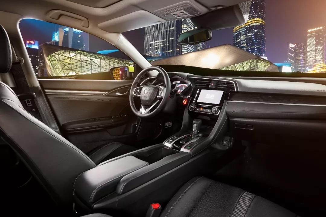 前脸的黑色镀铬饰条、侧面黑色的侧裙和门把手、尾部黑色的扰流板……对了,还有熏黑处理的17寸轮圈,东风Honda 全新CIVIC思域的样子变得更不好欺负了。