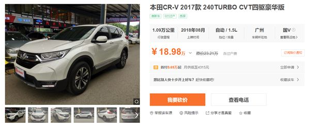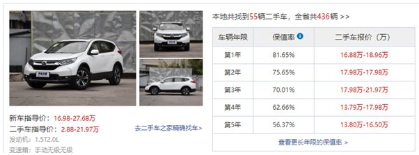 得益于过硬的产品力以及广泛的用车口碑,CR-V的市场保值率高到令人发指,市场传闻第三代与第五代车型上市初期,二手车市场黄牛将价格炒到比新车更贵,且供不应求。你以为这是天方夜谭?根据数据统计CR-V首年保值率高达81.65%,五年保值率高达56.37%,7年残值率高达42.28%,如果你对数据不太感冒,举个最简单的例子,2017年的CR-V四驱豪华版售价23.21万元,如今价格19万元,原车主比租车还划算。