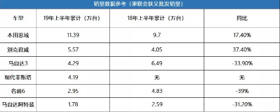 销量季军是一直以来擅长运动表现的马自达昂克赛拉,2019年上半年累计销量4.29万台,它也是整个马自达品牌销量贡献最大的车型,马自达上半年总计销量10.6万台,仅昂克赛拉一款车型就占据了40%的份额,足以见得市场对它的认可。