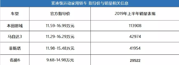 数据很清晰,运动家用轿车的这个细分市场和偏向舒适家用的紧凑级三厢轿车市场并不相同。以价换量的策略,在这个市场中吃不开。思域在之中价格最贵,地位最稳固也最高,但它依然能取得最好的销量表现。