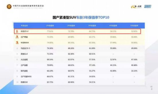 事实上,这不是第一次CR-V在保值率排行中脱颖而出,早在2009年,中国乘用车保值率研究报告SUV类评比中,CR-V均获得了十分优异的成绩。