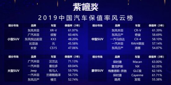 “2019中国汽车风行汇”于2019广州国际汽车展览会前夕拉开帷幕,期间,基于58车、J.D. Power和优信的海量挂牌数据和实际交易数据产生的《2019中国汽车保值率风云榜》正式出炉。在各级别、多品牌的激烈角逐中,东风Honda旗下的CR-V、思域、XR-V、INSPIRE、艾力绅、杰德等六款车型保值率均位列前茅。这份极具权威性的榜单不仅印证了东风Honda汽车产品深受中国消费者认可,也体现出客户对于品牌的青睐。