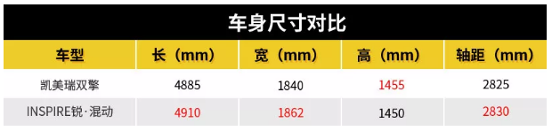 首先在车身尺寸上,它的长宽高分别为4910mm*1862mm*1450mm,轴距长达2830mm,除了高度比凯美瑞双擎小5mm以外,其余参数均领先凯美瑞双擎,这让INSPIRE锐·混动在腿部空间、腰部空间与后排空间将更为充裕。