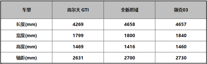 其次,在车身尺寸上,虽然三款车型都定位于紧凑型运动轿车,消费者对空间不会抱太高期望。但从车身尺寸来看,全新CIVIC思域的车身最长,并与领克03在轴距上直逼更高一级中型轿车,为消费者带来舒适的乘坐空间与宽裕的使用空间。
