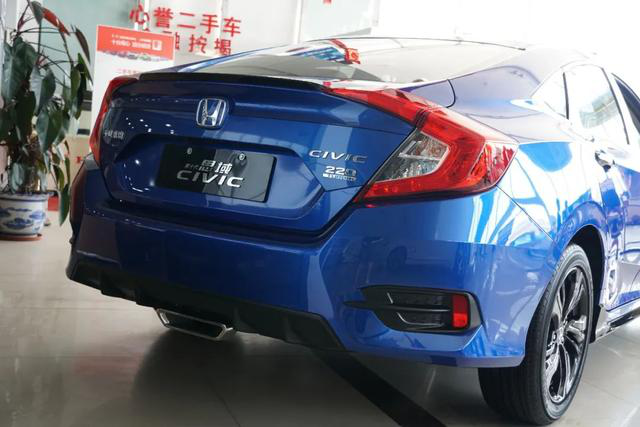 而车尾更是思域外型设计上的亮点,酷炫的回旋镖尾灯,配合运动套件的黑色尾翼、车底扰流板以及中置排气,对于一款定位紧凑的家用车来说简直是超规格的装备。