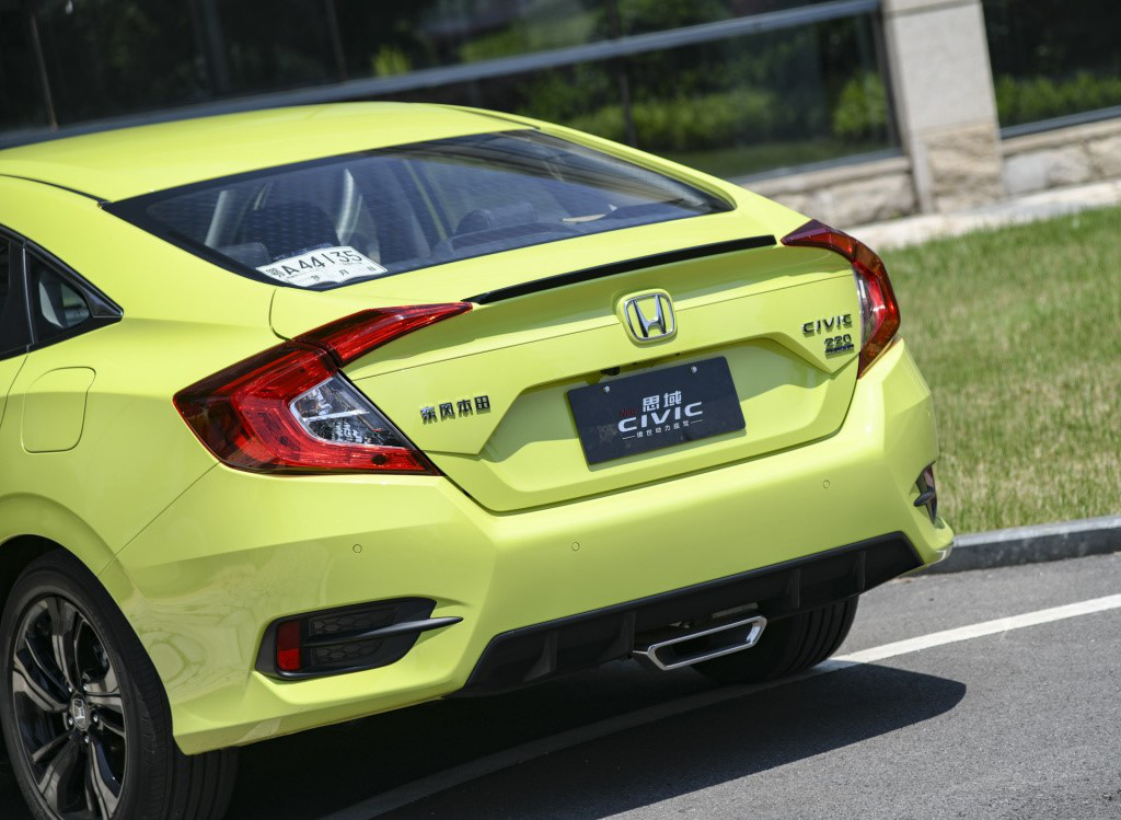 去年,全新CIVIC思域上市,外观更加个性运动,新增"闪烈黄"车身颜色,并增加了黑色套件,前脸以亮黑色的镀铬格栅+黑色下包围+碎片式LED远近光组组合,视觉冲击力更强;侧面熏黑轮圈+熏黑门把手+熏黑侧裙等,很有几分性能车的味道;而尾部除了回旋镖式尾灯+黑色小型扰流板之外,更应用了超跑上才能见到的中置排气,进一步彰显了全新CIVIC思域与众不同的运动特性。说实话,像全新CIVIC思域这样原厂车即有如此躁动外观的车型,国内确实少见,这样的外观造型也与潮流前沿的年轻人更相配,不论处于什么样的车流之中,全新CIVIC思域就是那个C位!