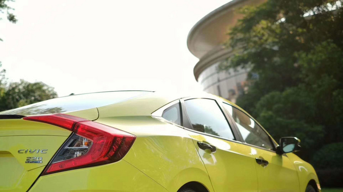 从整体外观造型来看,全新CIVIC思域依旧沿用了第十代车型的优秀外观设计,但为了更加凸显其运动属性,全新CIVIC的前杠造型经过了重新设计,宽大的铬进气格栅、侧包围、门把手以及车窗装饰框上采用了亮黑色涂装。在车身颜色上,全新CIVIC思域新增闪烈黄配色,再加上其它运动套件的加持,开上它,你就这条街上最靓的仔。