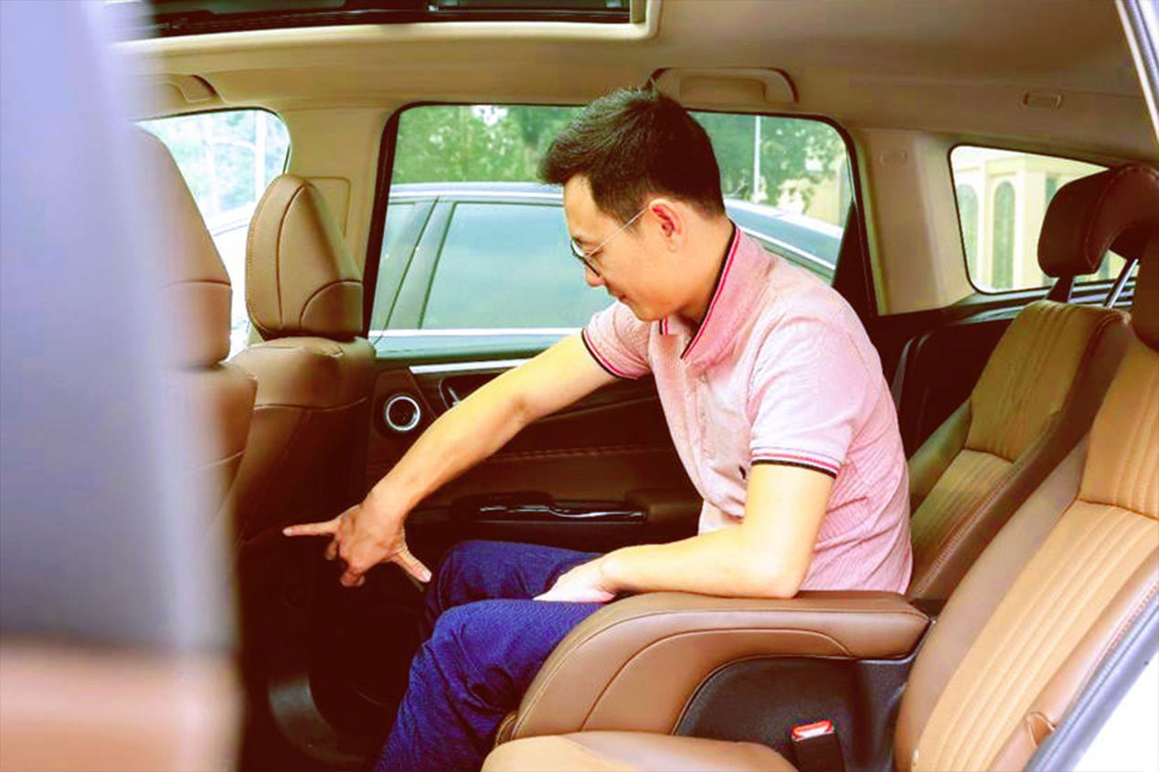 杰德的第二排座椅在空间方面的表现我觉得不用多说什么了,本人175cm的身高,如果不考虑第三排空间的情况下,我几乎可以完全伸直腿躺在第二排,放倒后背之后,第二排就变为一张“沙滩椅”,仰望着头顶的全景天窗,长途行车时简直不要太舒服。同时6座版的杰德第二排座椅为两个独立座椅,两个座椅中间还有皮质包裹的扶手,大大提升了第二排的乘坐体验。