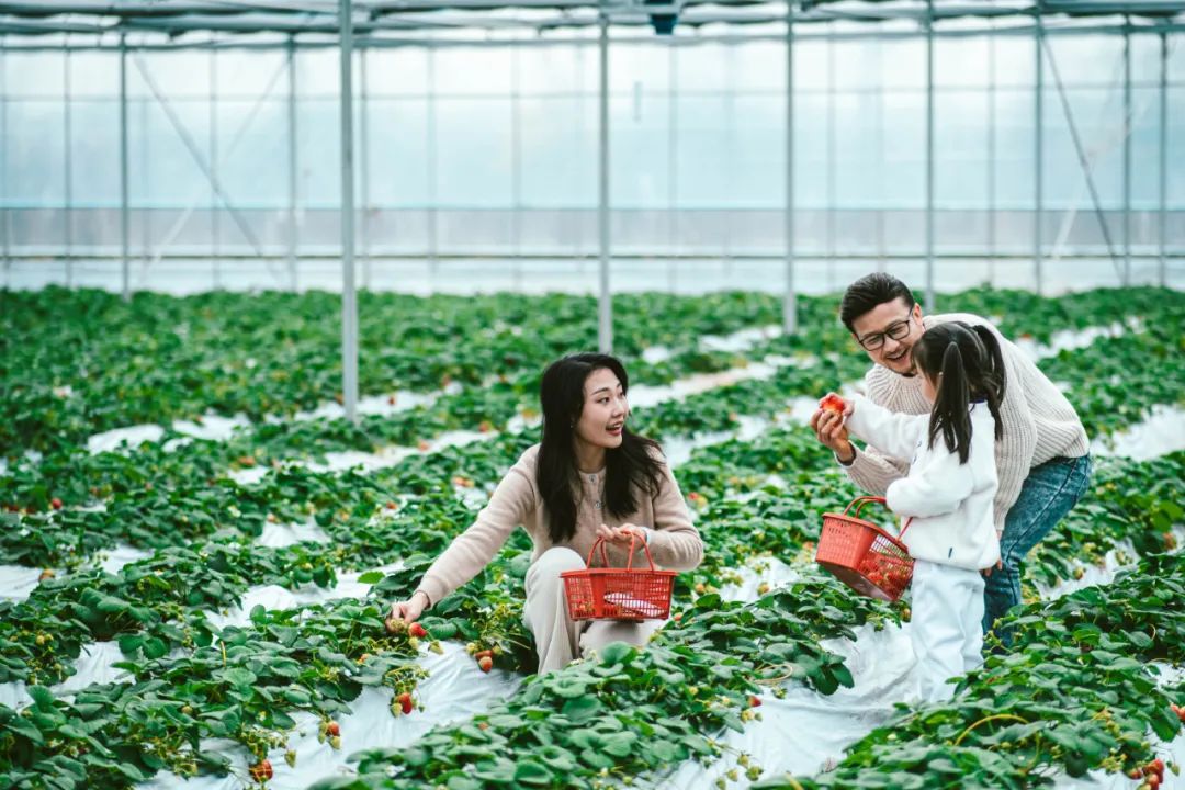 上周去蒲江果园采摘耙耙柑之后,女儿迷上了采摘活动。正好现在是成都冬草莓采摘季,于是这个周末,李先生又带着家人来到成都近郊的蔚然花海“摘草莓”。