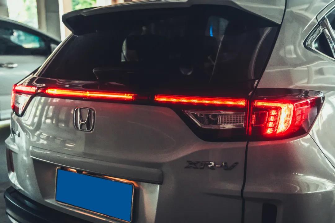整体的看下XR-V的造型,酷似刀锋的前灯,双拼色的轮毂造型同样的新颖,隐藏式的门把手也被我装饰起来了。XR-V的尾灯同样的亮眼,造型虽然看上去很板正,但却很吸引眼球,特别是尾灯亮起的那一瞬间,更加的迷人。