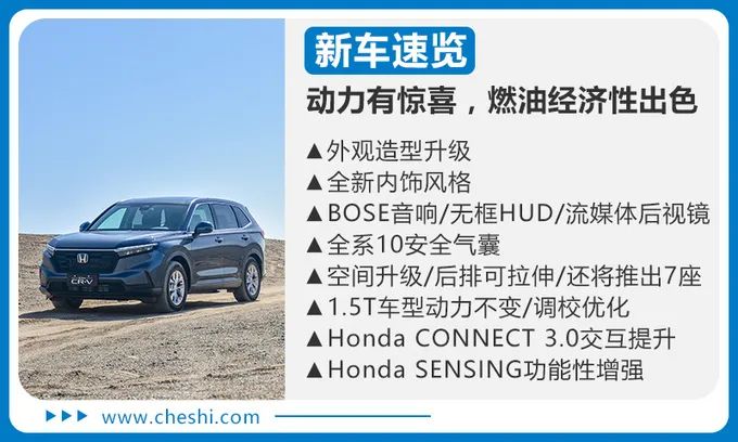 全新一代CR-V有什么亮点呢?总结一下,先期推出的燃油版本车型拥有全新的外观内饰、更高档更丰富的配置、更大更灵活的空间,并且在人机交互和智能驾驶辅助上进行不小的提升。而将在2023年推出的e:HEV和e:PHEV版本,则搭载了第四代i-MMD双电机混合动力系统,更加值得期待。也就是说,全新一代CR-V全面地实现了产品力的更新,用车体验会再次提升一个层级。