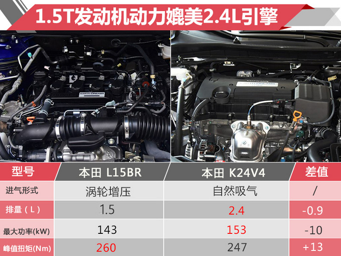 2.使用本田L15BR1.5L涡轮增压发动机 扭矩输出超越2.4L发动机。