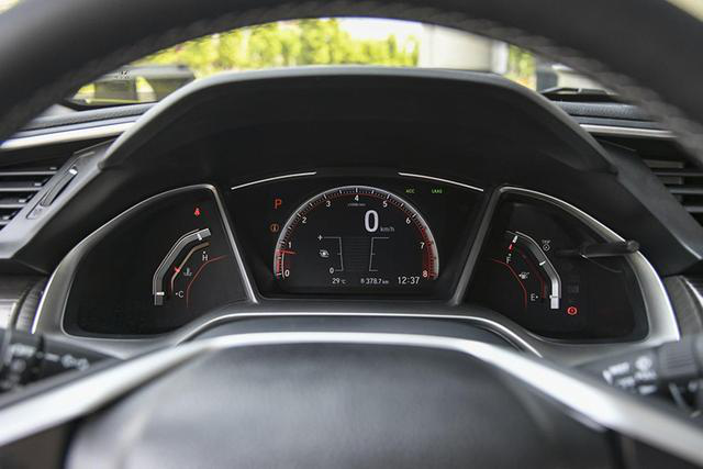 内饰方面,新款思域同样延续了老款的内饰整体风格和设计,不同的是在细节处增加了镀铬饰条和金属拉丝面板的装饰,其中运动版车型的方向盘有增加换挡拨片,同时仪表盘背景显示灯从老款的蓝色改变成了红色。