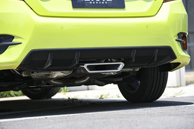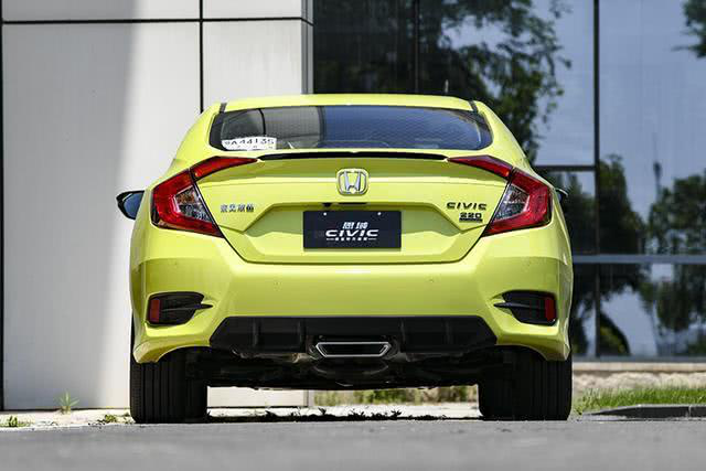 而更多的改变来自车尾,并在设计上汲取自海外版思域Coupe和思域Si车型的元素,车尾不仅增加了小型后扰流板,同时运动版车型的后包围底部还采用了扩散器+中置单出镀铬排气的组合,显得整车运动感十足。
