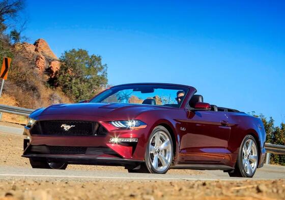 上图的这一台也是海外在售的第六代Mustang车型,这一代的Mustang敞篷版不仅有拉风的外观,底盘规格也比上一代有所提升,后悬架采用多连杆样式(上一代为整体桥式非独立悬架),改款后的2018款还装备了福特全新10AT变速箱。