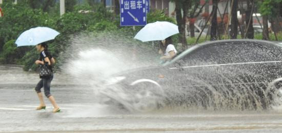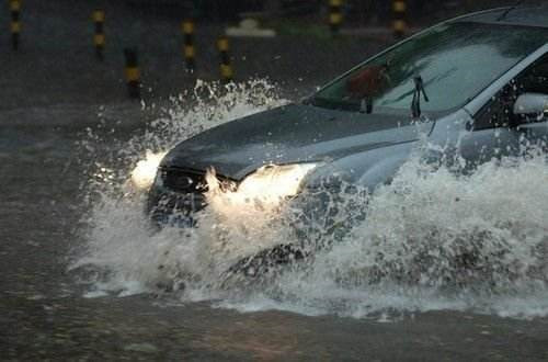 7、 见到积水处莫左闪右避。看到水就闪,或者马上踩刹车放慢速度,这是一般人的通病。实际上这两种方法都非常危险。左闪右避的坏处是,令后面的司机不知道该怎么反应,意外很容易发生。 其实水深大约15厘米左右,根本不会对汽车有任何影响,完全可以用正常的车速行驶,不需要担心水进入车内或者抛锚。要注意的是,当车子过完水后,制动系统可能会暂时减弱,刹车的时候距离要加长,因此雨天驾车最好保持更长的安全距离。