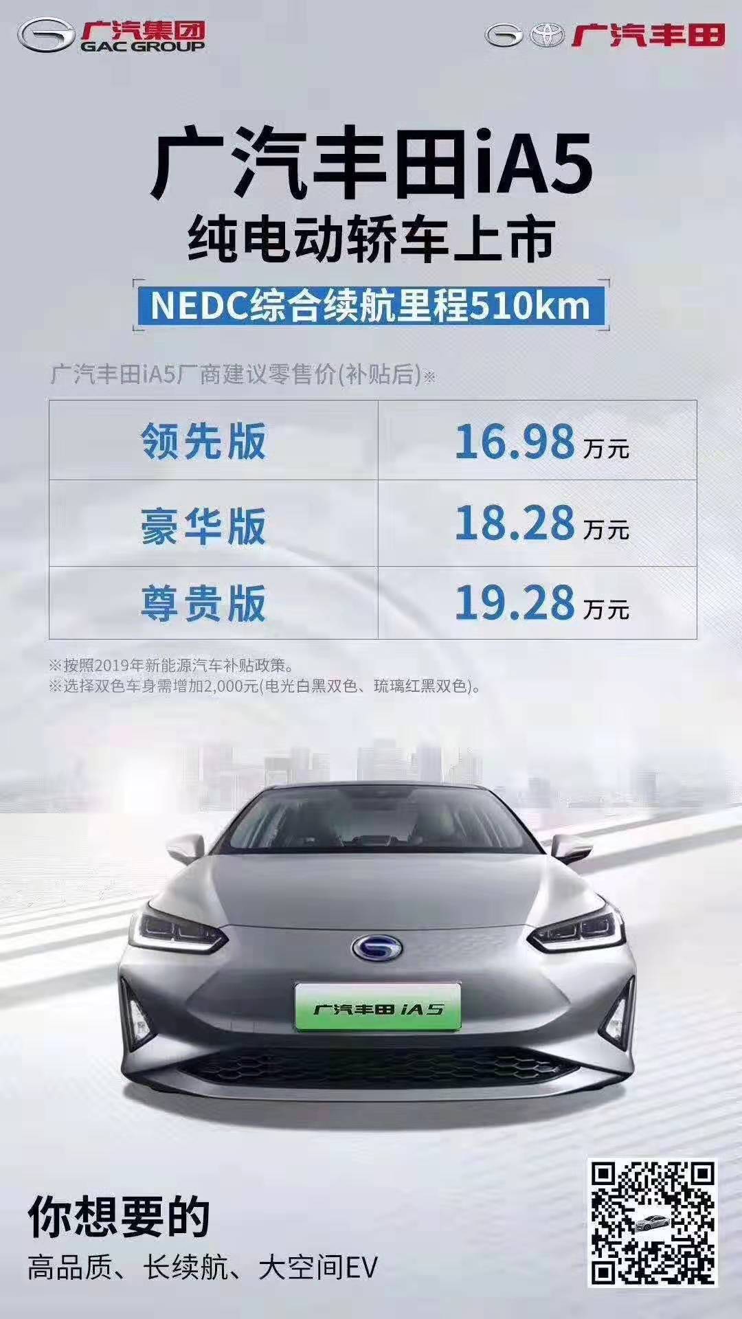 本店内有广汽iA5预售,合资车企首款510km综合续航纯电轿车 广汽丰田iA5上市,你想要的 高品质、长续航、大空间EV、直上绿牌! 感兴趣的朋友可以到店咨询购买