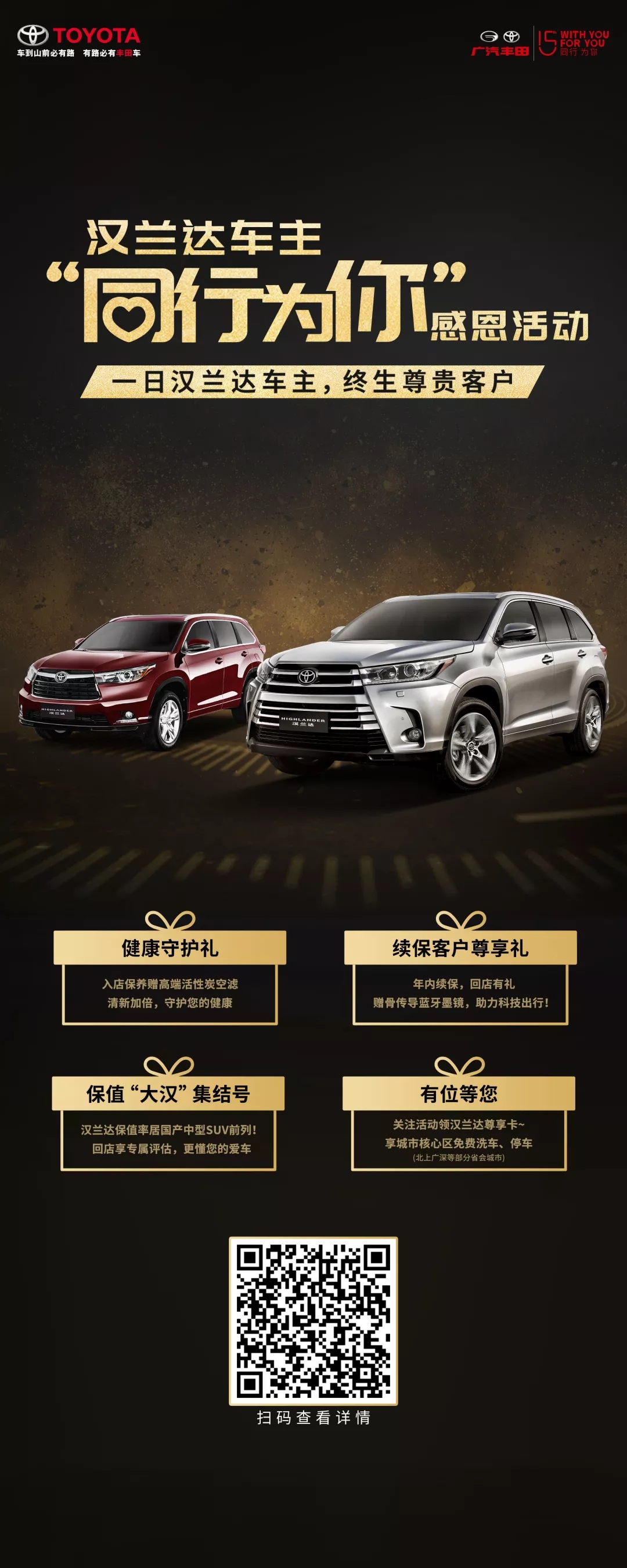 为了回馈广大车主对汉兰达的支持特别推出“同行为你”感恩活动