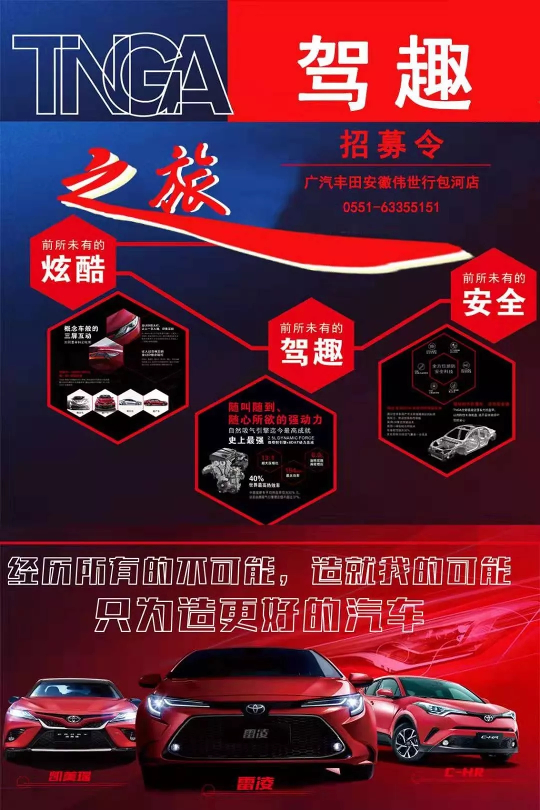 报名地址:繁华大道与天津路交口广汽丰田伟世行包河店