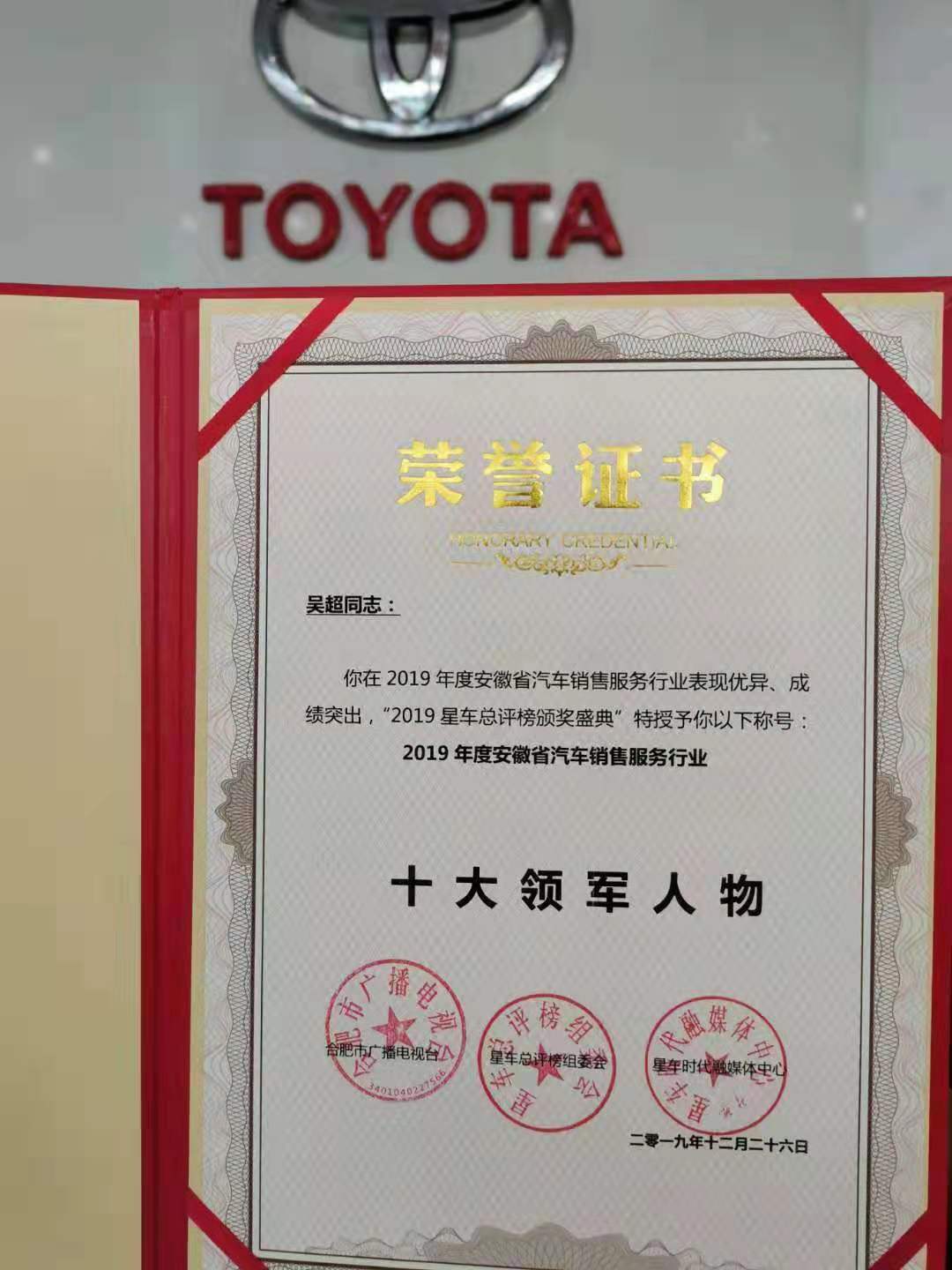 在本次盛大的评选中,安徽广汽丰田伟世行总经理吴超先生脱颖而出,荣获安徽汽车销售行业十大领军人物的殊荣