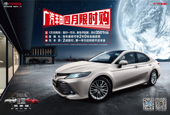 【广汽丰田伟世行 四月限时购】凯美瑞预交99元狂翻20倍装潢或保养基金二选一!一万元购车:首付一万元,新车开回家,月付3501元起!凯美瑞贷款最高享2年0利息 !广汽丰田伟世行包河店(全新第八代凯美瑞)国内首款出自TNGA设计理念的车!且凯美瑞双擎电池无忧计划不限公里数,不限年限,给予您最好的保障,消灭中庸,年轻运动更激进,造型、质感、动力全面升级!现火爆预定中!【一】精品5折选装【二】二手车免费评估,成功置换,有置换礼包!咨询赶紧点击【‘获取底价’或‘询价’】获取底价!想知更好价 留下联系方式!我们给你最专业的讲解,给你最好的建议,以及最贴心的服务!让你购车无忧,感兴趣的朋友可以到店咨询购买,以下均为网络报价,到店价更优,欢迎您在网上咨询,我店销售人员会及时与您联系:0551-63355151