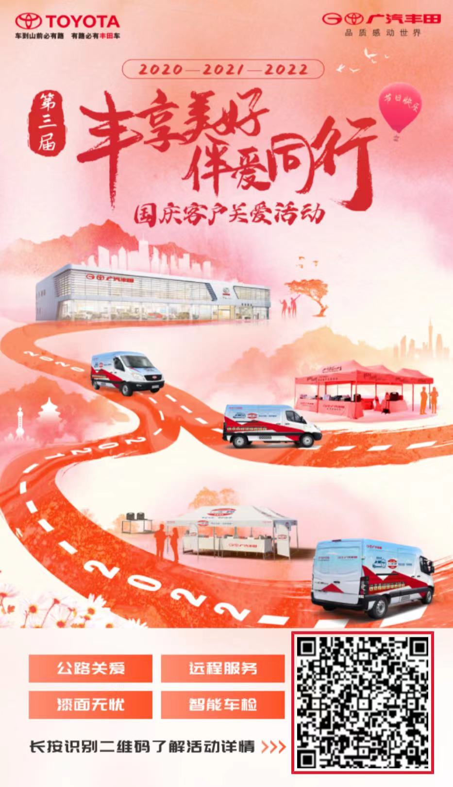 广汽丰田合肥伟世行店诚邀您扫描右下角二维码,了解国庆客户关爱活动详情,即有机会获得【一幅免费喷漆券】与【一次免费智能车检】