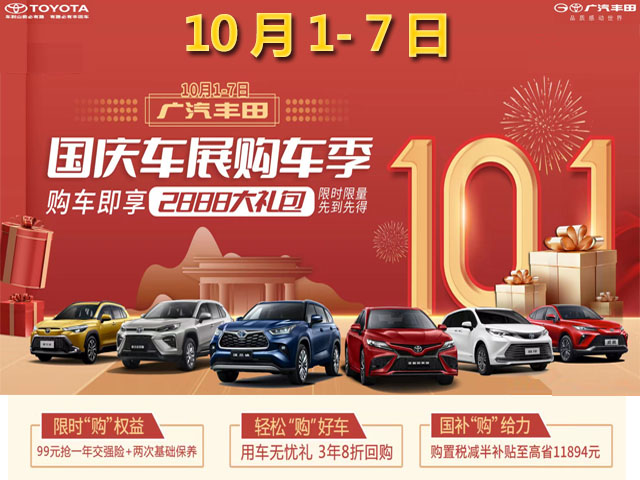 10月1-7日 车展购车季 抢2888元大礼包