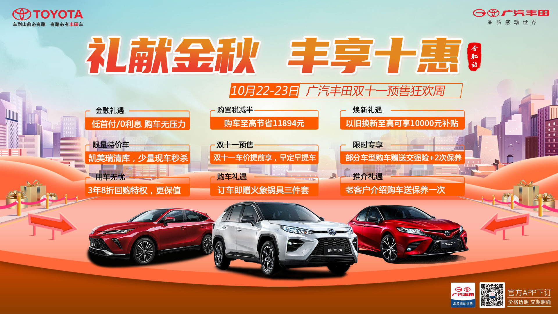 ┏┈┈重要通知┈┈┓薅羊毛看这里11.11预售会|火爆来袭⑨重大礼提前享?♀欲购从速,只等你来┗ 广汽丰田合肥伟世行包河店 ┛咨询:400-125-7905
