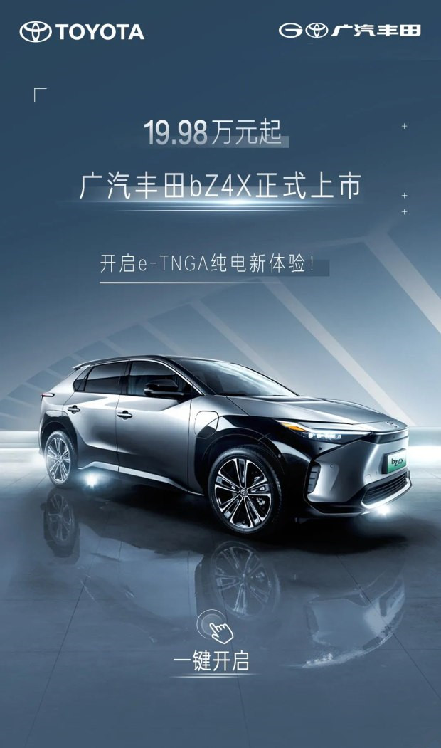 广汽丰田bZ4X正式上市 开启纯电新体验
