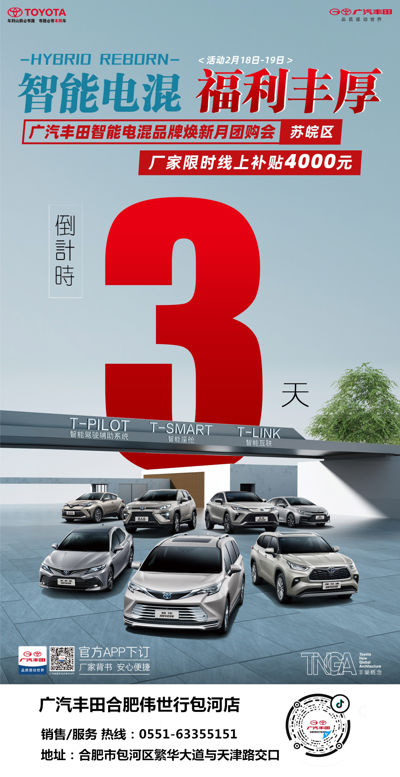 广汽丰田智能电混团购会2月18日-2月19日倒计时3天9.9元抢美菱电饭煲99元享4000元限时补贴超强钜惠 全民疯抢!就在伟世行包河店电话:400-125-7905