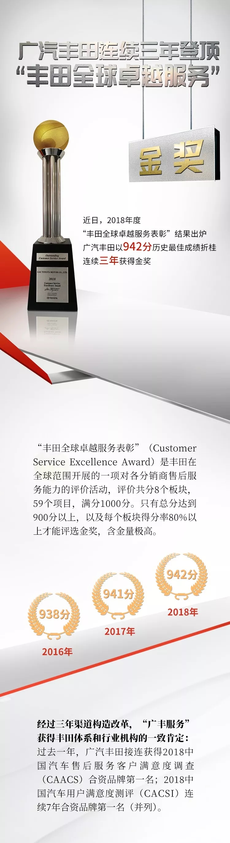 广汽丰田登顶“丰田全球卓越服务”,连续三年获金奖