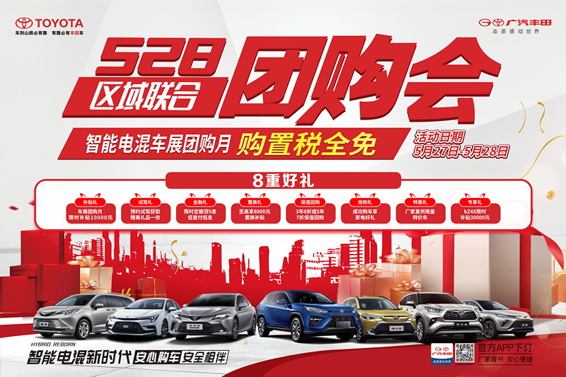 528区域联合团购会万元补贴丨限时限量8重豪礼丨全民疯抢购置税全免 等你来#广汽丰田合肥伟世行店电话:400-140-4522