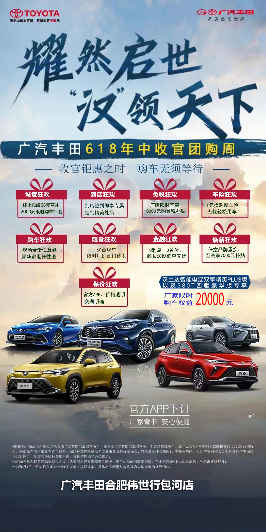 广汽丰田618年中收官团购会报名到店送精美保温杯豪华家电任性送九重好礼 锦上添花合肥伟世行:400-931-7541