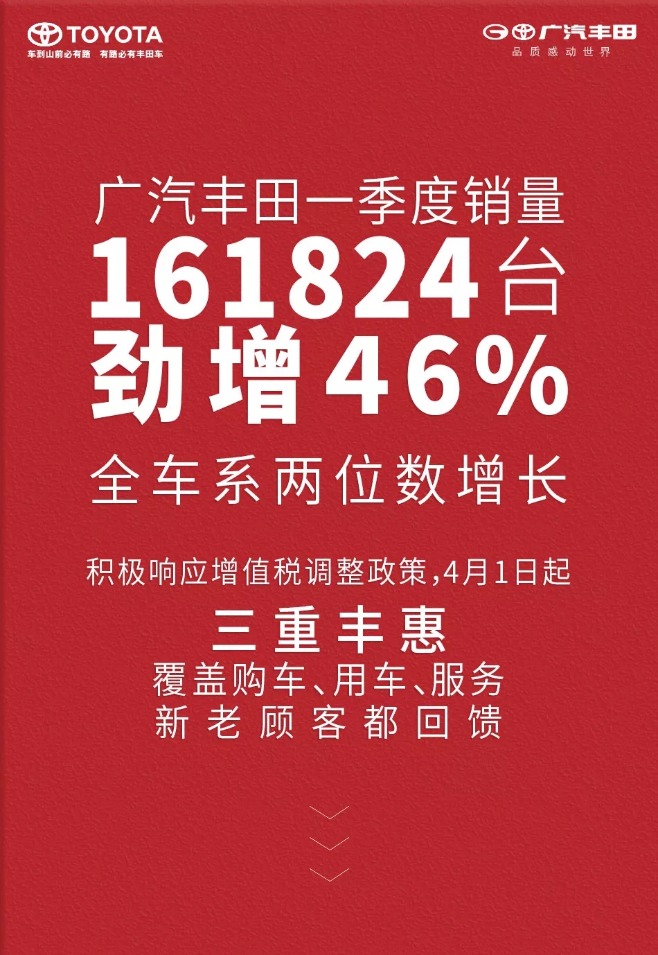 广汽丰田一季度销量同比增长46%,三重丰惠感恩新老顾客
