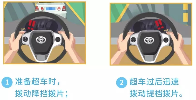 ?上坡超车时按减挡拨片减挡,增大扭矩加油门超车;下长坡时用减挡拨片减到相应速度的挡位控制下坡速度,减少刹车的使用。