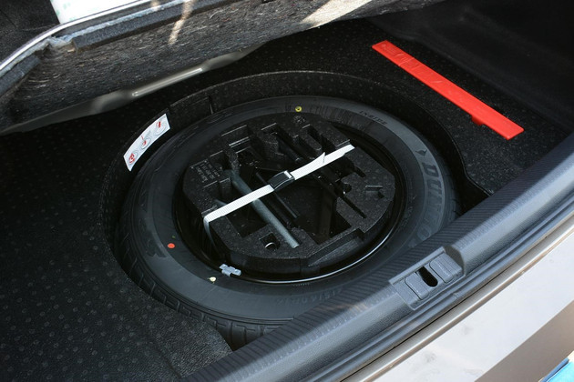 不同的车型,备胎放在不同的地方。有些SUV备胎是放在车尾或者底盘上。大多数备胎的规格都是小于车本身的轮胎的。我们需要注意的是,备胎上提示的信息:限速80公里(50英里)每小时。备胎只是个临时胎,不能长期替代原本轮胎使用。取出备胎和千斤顶、工具包。