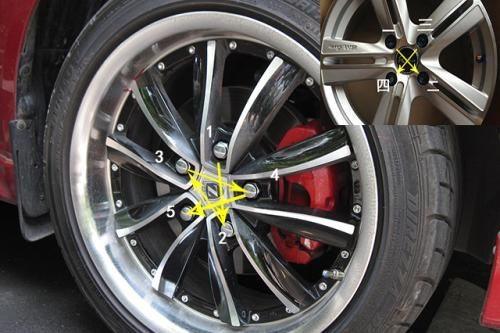 安装备胎的时候对准螺栓口,然后用手将5个螺栓按对角线方式拧上去,能固定就可以了。此时轮胎依旧处于悬空状态,想一步到位是不可能的。这里需要再次强调!!!拧螺栓的方式:沿对角线。