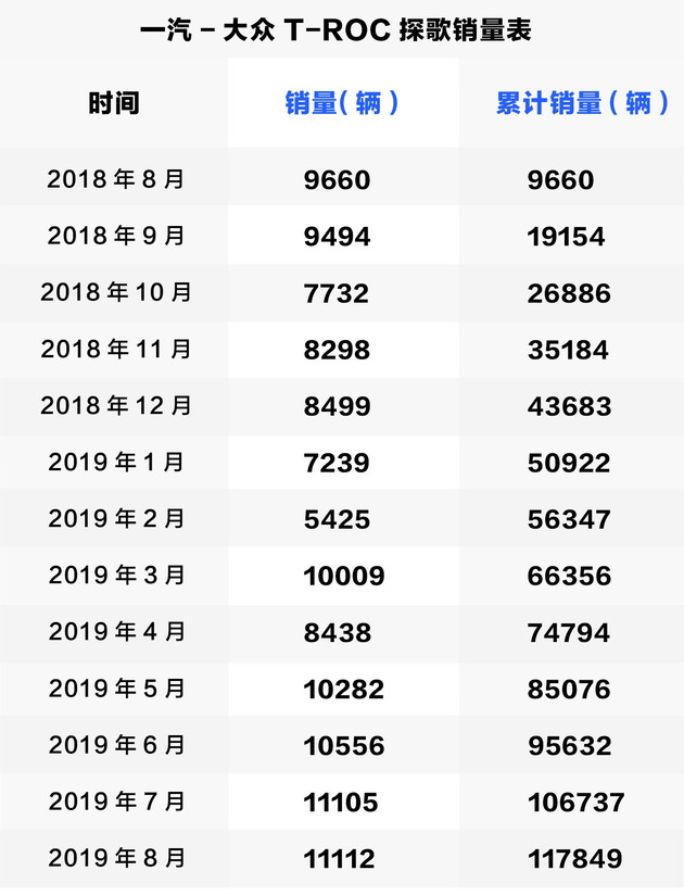 一年销量10万多一些,看似并不夸张,但作为SUV家族新军,如何将想买SUV的消费者吸引到一汽-大众经销店内,本身就是一个难题,而一汽-大众非但没有出现问题,反而通过探歌+探岳的“组合拳”,成功的跻身主流SUV市场阵营,这其中的奥秘就值得我们来探究一下。