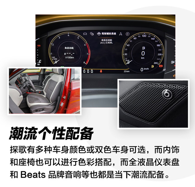 所以探歌用潮流设计、个性的色彩搭配以及年轻人喜欢的Beats品牌音响、全液晶仪表等时尚特点,获得了都市消费人群的追捧,可以说探歌就是SUV里的“大众甲壳虫”,这种年轻的态度是以往的一汽-大众车型难以提供的。
