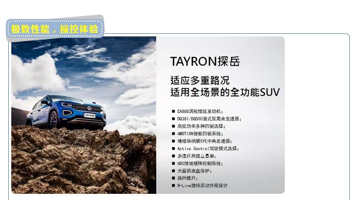 对于探岳你的印象是什么?可能大家的第一映像是车特别大,确实探岳在同级车中来说体型不算小,空间也挺宽敞的!但是对于探岳你需要知道的可不能仅有这些哦!今天就和我一起深入了解下探岳是什么样子的吧!!!