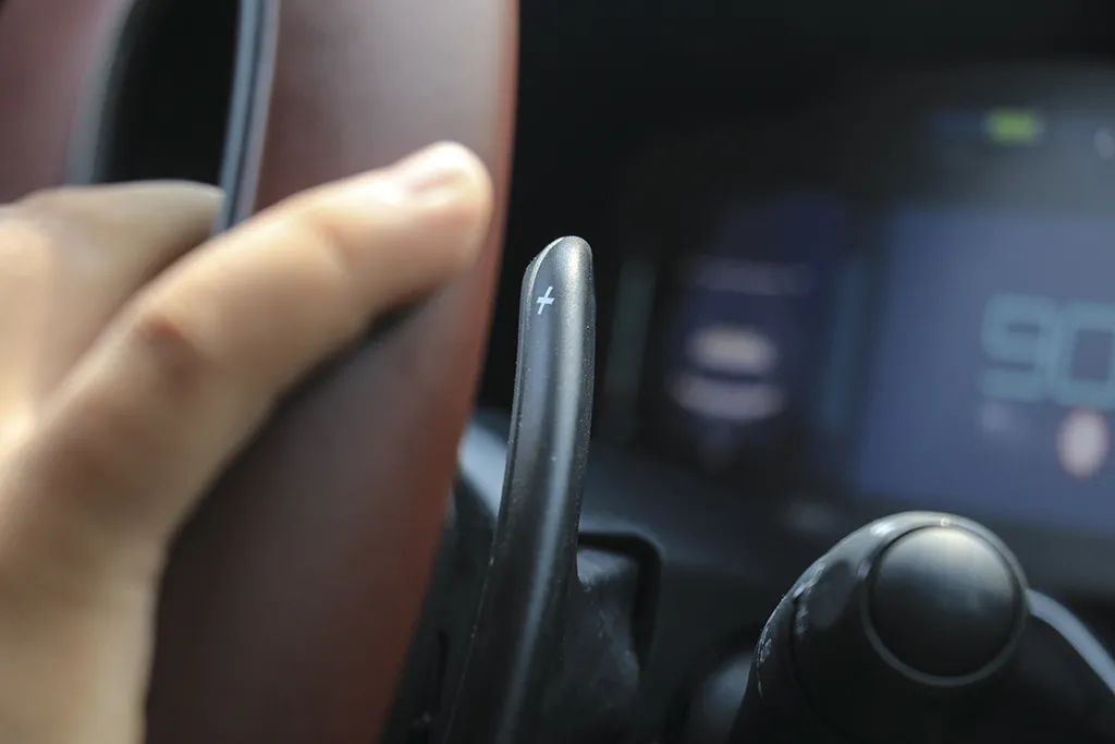 换挡拨片实用性也还不错,键体很大可以用整个手掌来拨,连击拨片可以较快的连续降挡。用拨片降挡有一个小妙处,你会愿意在手动降挡之后等待一两秒,体验好过自动挡模式下深踩油门之后动力迟滞半秒。