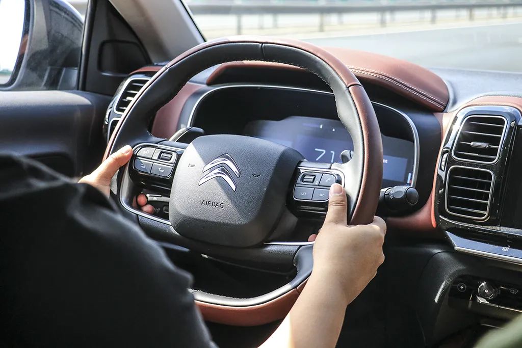 把车开起来以后,这台车给我留下的第一大印象是转向力度轻到难以相信。当然转向轻只是一种风格,没有褒义或贬义。驾驶时几乎不需要用力,轻轻一推方向盘就能转过大半圈。在通过十字路口、经历连续弯道时候,极轻的转向力度并不影响指向的精准,车可以泰然的通过各种弯道、匝道。小小弊端是在掉头时,这台车不那么容易直接拐进我想进的那条道;不过大多数时候,开这台天逸PHEV还是很轻松很省力的。