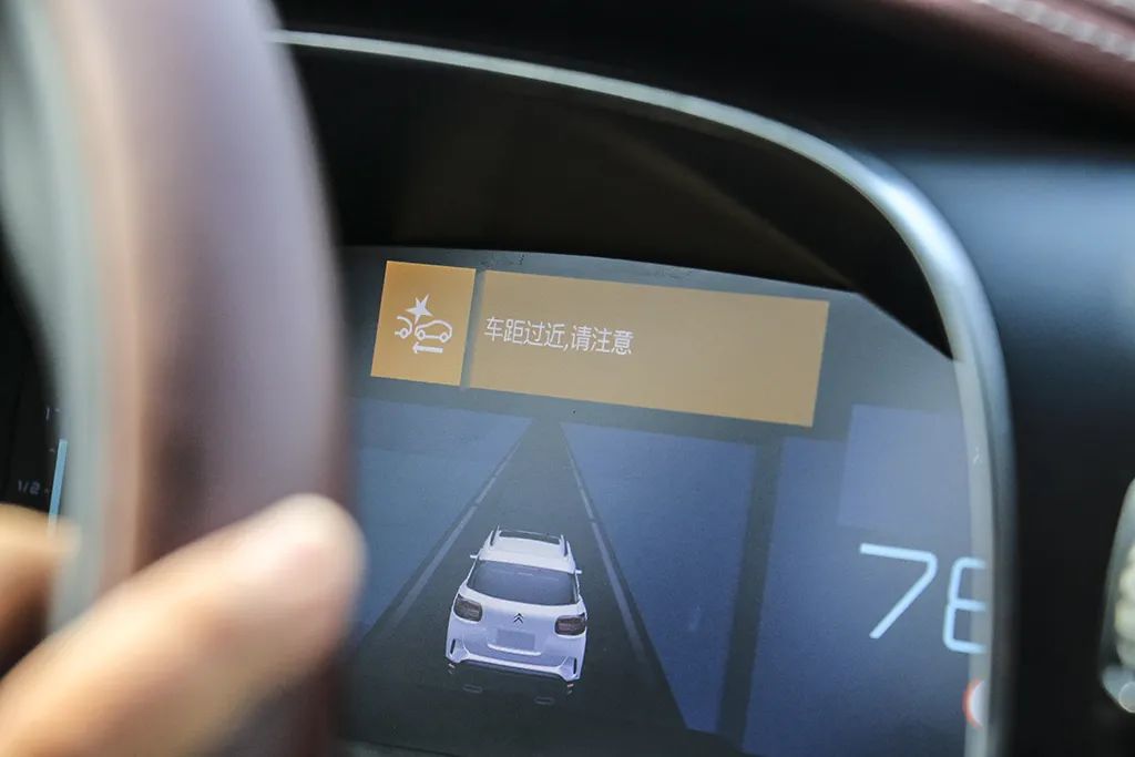 天逸PHEV高配版本有ACC自适应巡航、道路居中辅助等驾驶辅助功能,在高速公路上还是可以解放双脚的。当距离前方车辆过近时,仪表盘会给予警报。