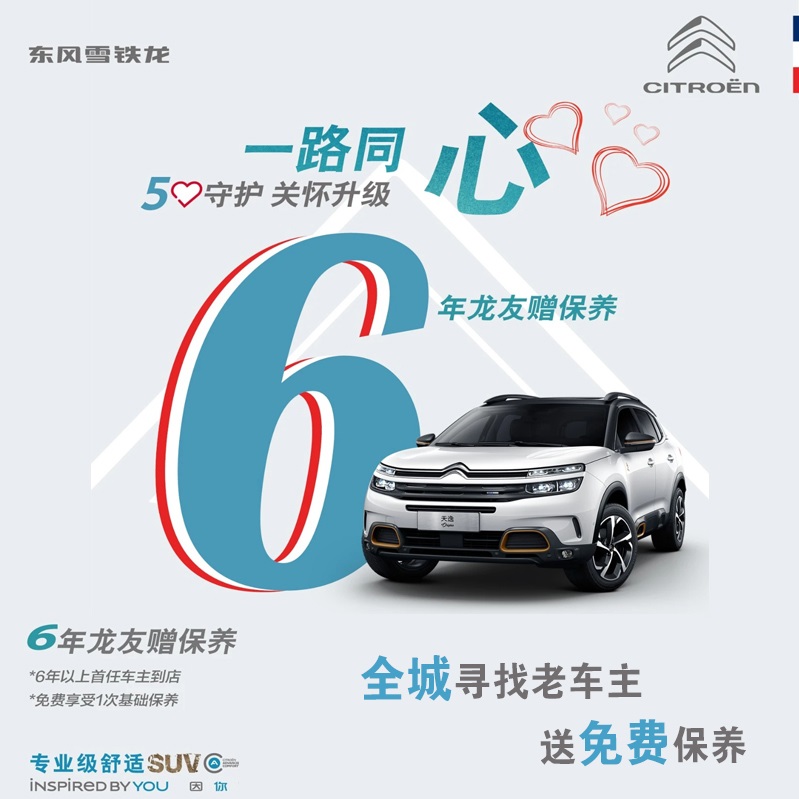 6年以上(不含6年)的东风雪铁龙首任车主送免费基础保养一次 32项免费检查!是不是很心动赶快查看你的行驶证是否在6年以上车主。