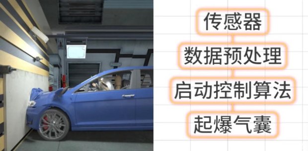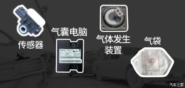 当碰撞发生时,碰撞传感器将信号通过CAN总线传递至气囊电脑,如果电脑判定达到气囊起爆标准,就会给气体发生装置发送点火信号,其会在极短时间内产生大量氮气充满气袋,从而保护驾乘人员的安全。