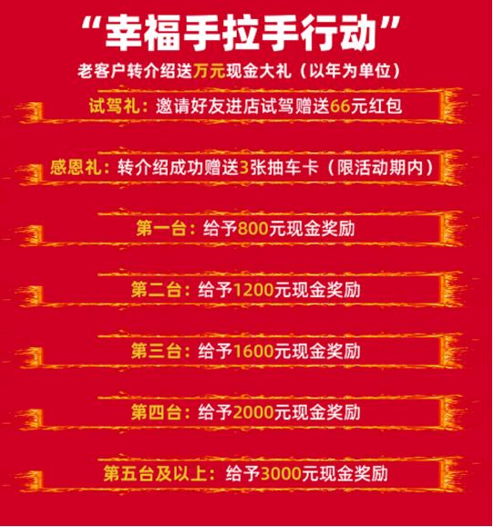 现推出“幸福手拉手行动”老客户转介绍送万元现金大礼(以年为单位)
