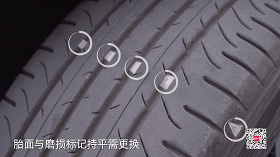 平时使用一般看轮胎的磨损情况,当轮胎上的胎纹磨损到与轮胎的保险标记线平行的时候,就应更换。(轮胎上的保险标记线在轮胎花纹的凹槽里)