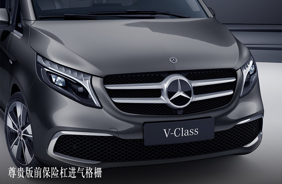 前脸设计传承经典,于细节之处流露出匠心之美。采用高光银漆面的双格栅饰条,搭配中央的星徽,尽显V级MPV的沉稳气场。