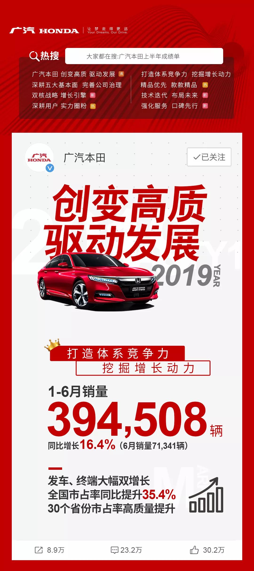 热搜丨394,508辆,广汽本田上半年成绩单放榜